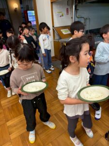 いつも以上に浮かれ気分で話していた子ども達。そう!10月24日(金)と25日(土)は、カリーノ保育園と松原カリーノ保育園のこすもすクラスの子ど