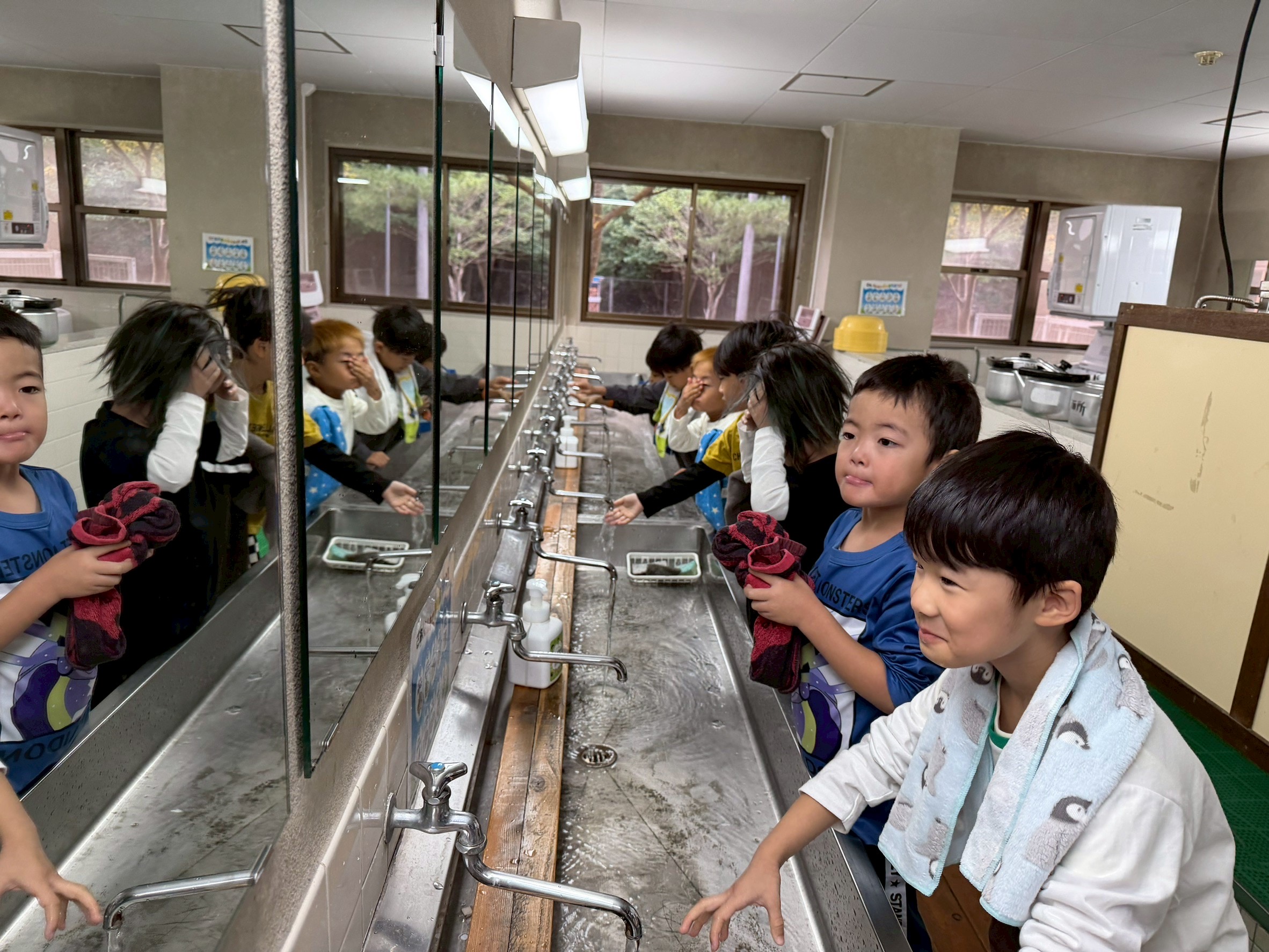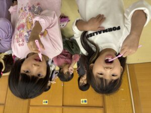 朝は施設の前の広場で朝の体操をして、朝のお歌を歌って元気よく1日をスタートする事が出来ました♪