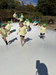 転んだり、みんなそれぞれ伸び伸び好きなことをして遊ぶ事が出来ていました。