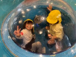 5階では科学あそびがたくさん!!シャボン玉の中に入ってハイチーズ📸なかなかできない体験に「もう一回はいりた~い」と物足りないようでした…😢