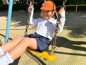 歩いていて見つけた滑り台やブランコ、広場で鬼ごっこをして遊びました!!
