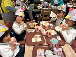 「明日はケンタッキー!!」「ジュースはコーラやで」と前日からソワソワしている子どもたち。