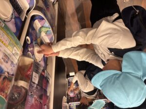 お腹いっぱい食べて次に向かったところはガチャガチャのたくさんあるお店。500円以内であれば好きなものを選んで回していいとのこと。「やったー!!!」「どれにしよう・・・」とお目目キラキラでお店の中へ散る子どもたち。それぞれに好きなものを探しあてニコニコ顔でお店から出てきました。